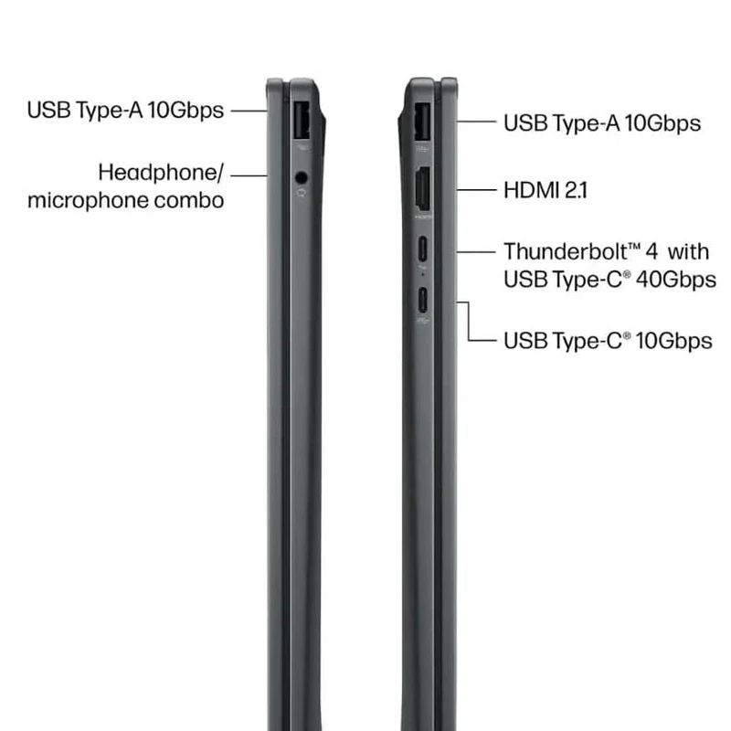 - پورتهای کامل: Thunderbolt 4، USB-C، USB-A، HDMI و جک هدفون/میکروفون
